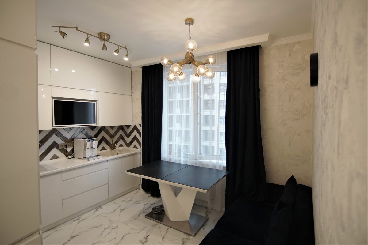 Самое распространенное сочетание в современном дизайне квартир – черный с белым. Эта двухфазная композиция подходит для любителей простого лаконичного стиля.