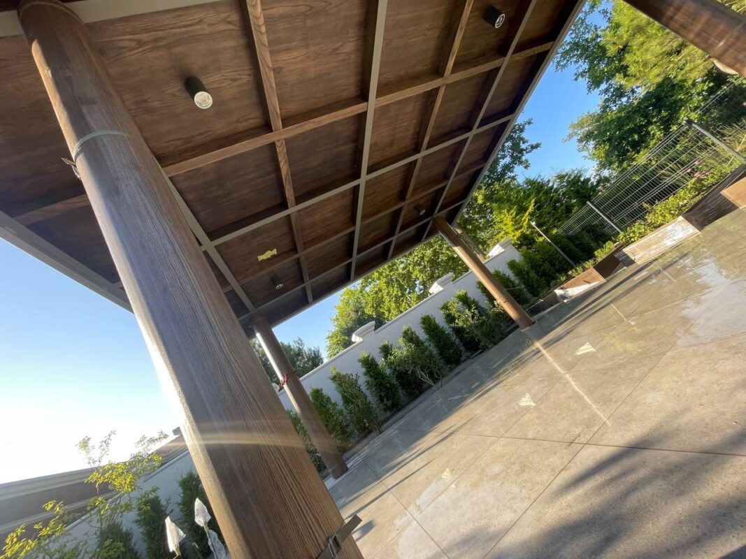 Представляем один из наших последних проектов — деревянный навес для двора, выполненный по индивидуальному заказу. Конструкция изготовлена из качественной древесины, обработанной антисептиком для защиты от влаги и долгого срока службы.